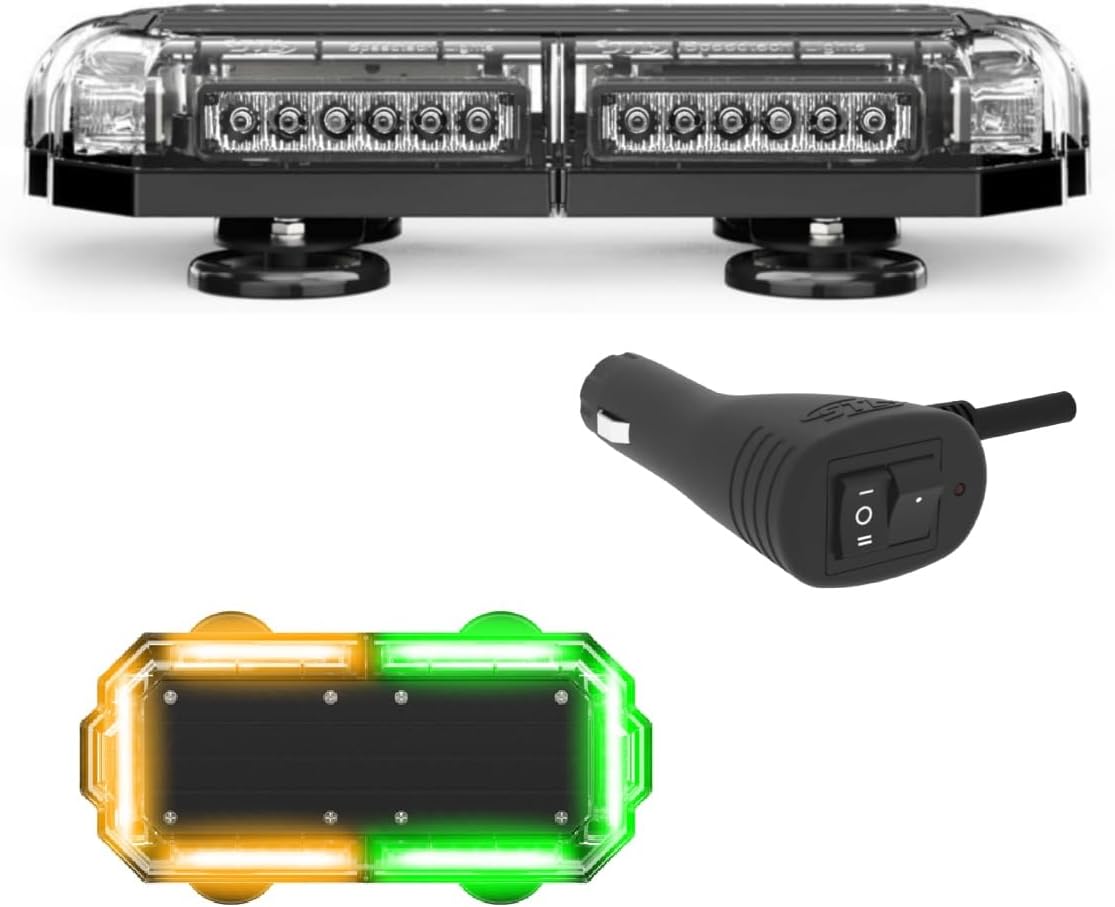 SpeedTech Lights K-Force Micro Elite 14 Mini LED Light Bar – 36 LEDs 108W Magnetic Roof Mount Emergency Strobe Light for Trucks, Plows & Cars (Amber/Green)