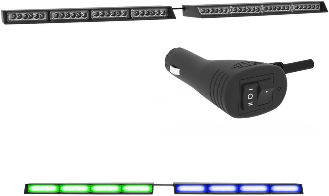 SpeedTech Lights Raptor-X Elite TIR Split LED Strobe Visor Light Bar – 48 LEDs 144W Upper Windshield Mount w/Cigarette Plug Controller for Police, Fire & EMS (Blue/Green)