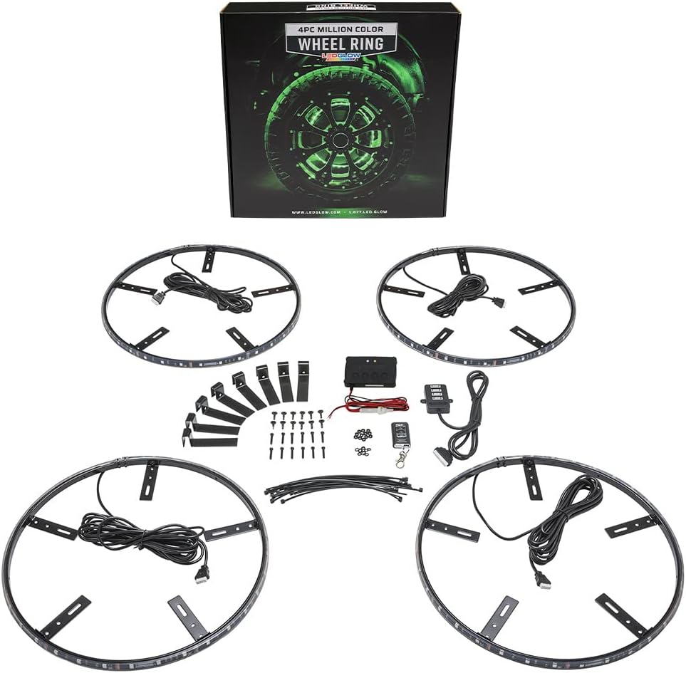 LEDGlow 4pc 15.5" & 17 Combo Million Color LED Wheel Ring Accent Light Kit - Fits Wheels with 15" & 16.5" Brakes - Heavy-Duty & Versatile Design - Waterproof Strip - Includes Control Box & Remote