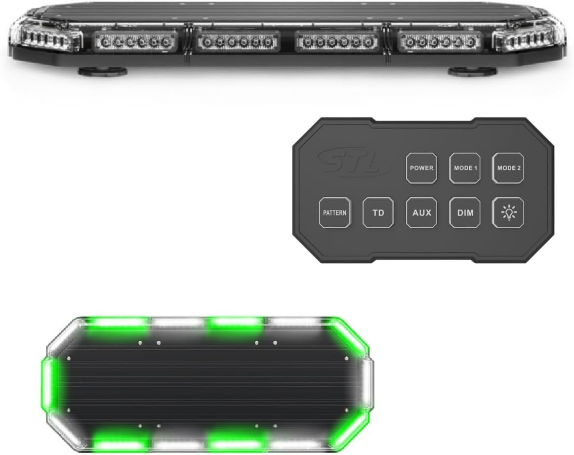 SpeedTech Lights K-Force Elite 27 TIR Mini LED Light Bar – 84 LEDs 252W Magnetic Roof Mount Emergency Strobe Light for Police, Fire, EMS, Tow & Security (Green/Clear Alternating)