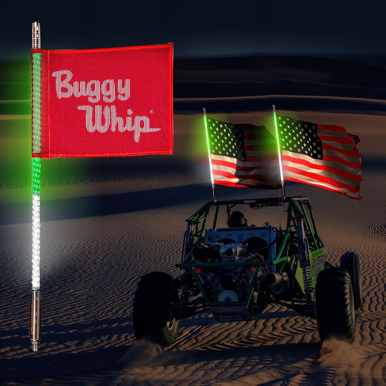 Buggy Whip Super Bright Quick Release LED Whips - Industrial Strength, Made in The USA - for UTV, ATV, SXS, Polaris, Can Am, Trucks, Mining, Construction, Safety Vehicles (Green/White, 6FT)