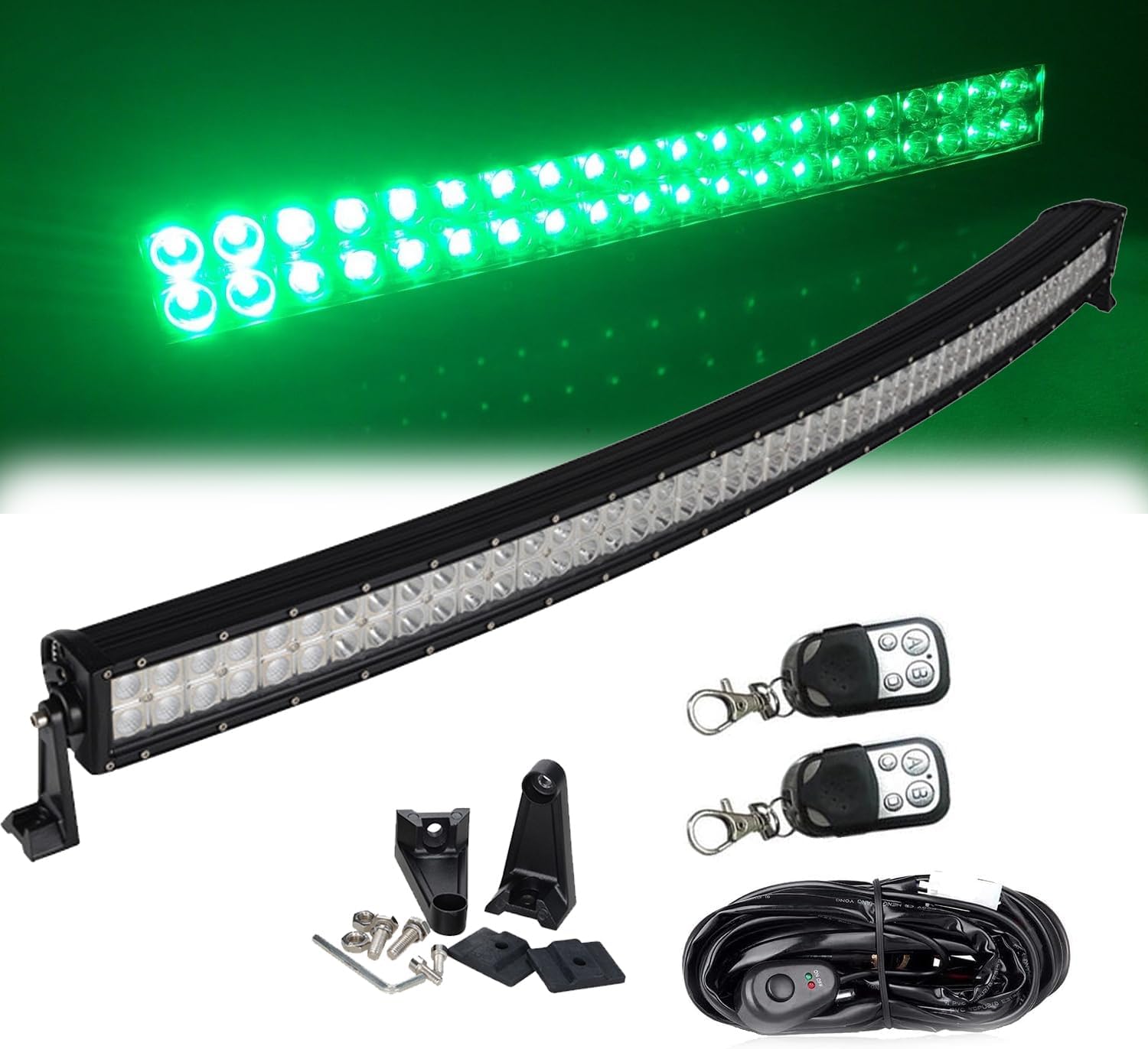 Curved LED Light Bar 50 Inch 576W Spot Flood Combo Green White Strobe 24 Modes with Memory Off Road Lamp Fishing Hunting Emergency Work Lighting for ATV Trucks UTV SUV Pick-up Van Boat Tractor