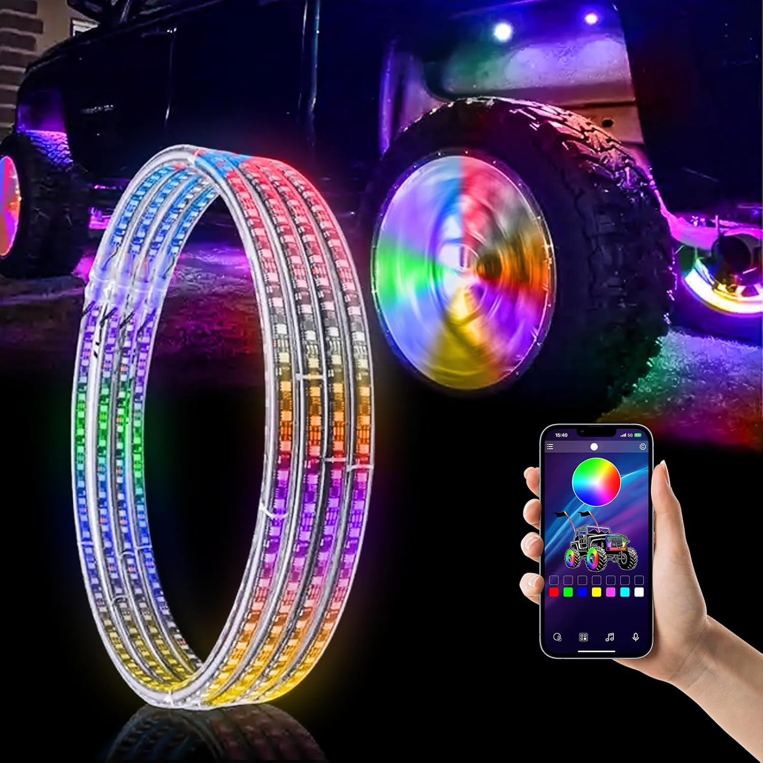 Dream Chasing Color 17 Inch Wheel Rim Light for Truck Car Tire Wheel Ring Double Rows LED Illuminated Lights Kit (Fits 21-28" Tire Wheels)