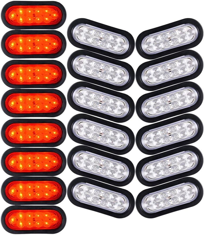 Completed Kit 20PCS 6-inch Oval Clear Lens 10 LED 5W Red Lamps Stop Brake Running Tail Lights Taillights with Waterproof Rubber Gaskets Wiring Plug for Caravan Trailer Pickup Truck RV UTV