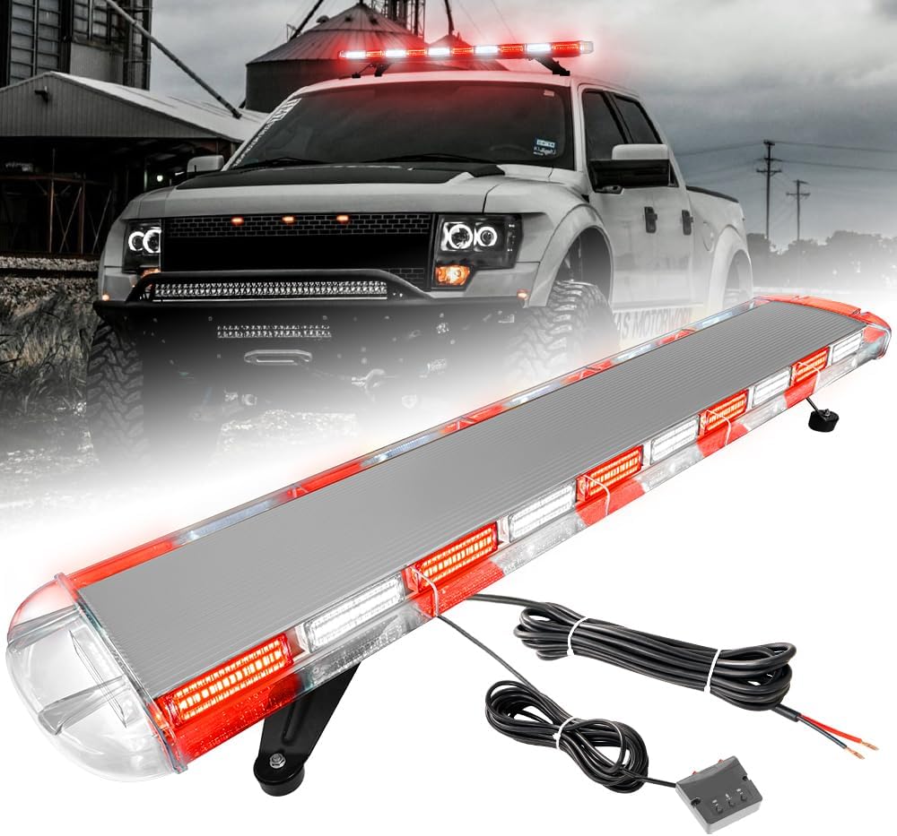 ASPL 46 inch 220 LED Rooftop Low Profile Strobe Light Bar Emergency Warning Beacon Car Hazard Flashing Construction Roof Lights Bars for Trucks Tow Automotive Construction Vehicle (Red/White