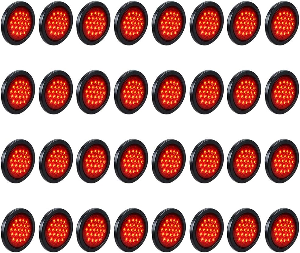 32X 4 inch Round 24-LED Red Light Lens Stop Brake Running Rear Tail Lamp Trailer Truck RV DC12V Universal