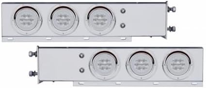 UNITED PACIFIC 62747 Bumper Light Bar, Stainless, with Bracket, Clearance/Marker Light, Red LED, Clear Lens, Stainless Steel, with Chrome Bezel and Visors, 7 LED Per Light