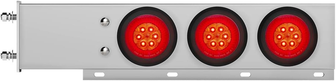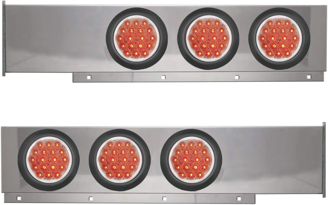 United Pacific 61803 Light Bar, Stainless Steel, Spring Loaded, Rear, Stop/Turn/Tail Light, Red LED/Clear Lens, with 2.5" Bolt Pattern, with Chrome Bezels and Visors, 36 LED per Light