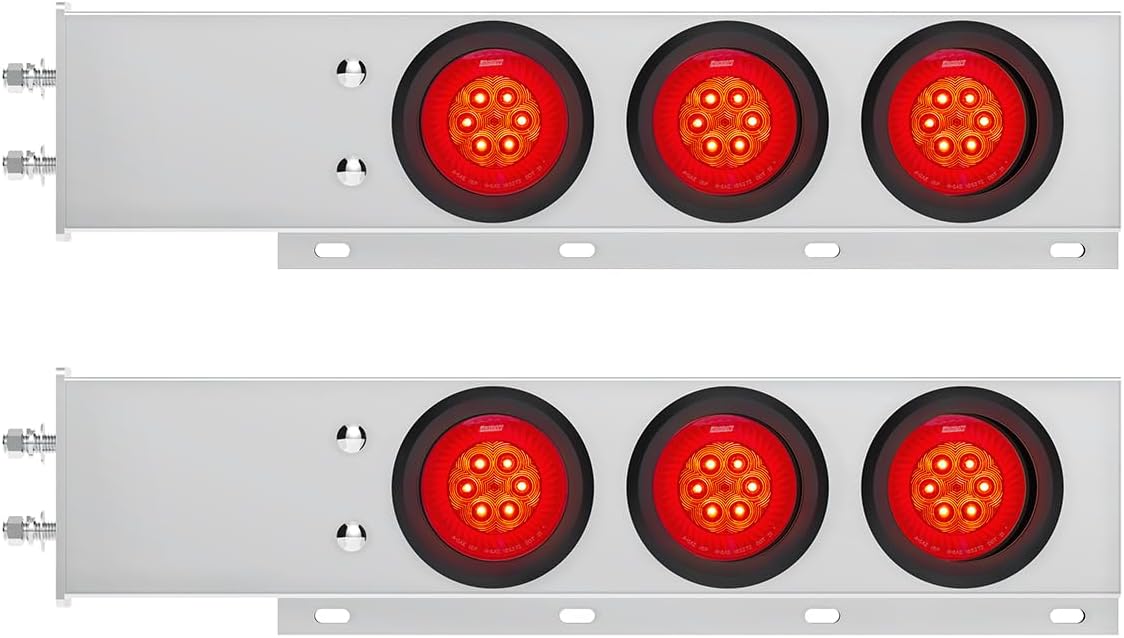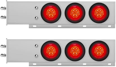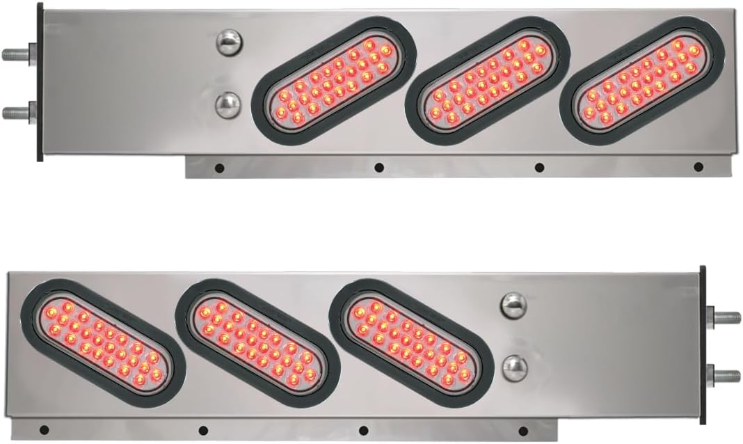 United Pacific 61017 Light Bar, Stainless Steel, Spring Loaded, Rear, with 2-1/2" Bolt Pattern, with Six 4" 16 LED Turbine Lights, Red LED/Red Lens