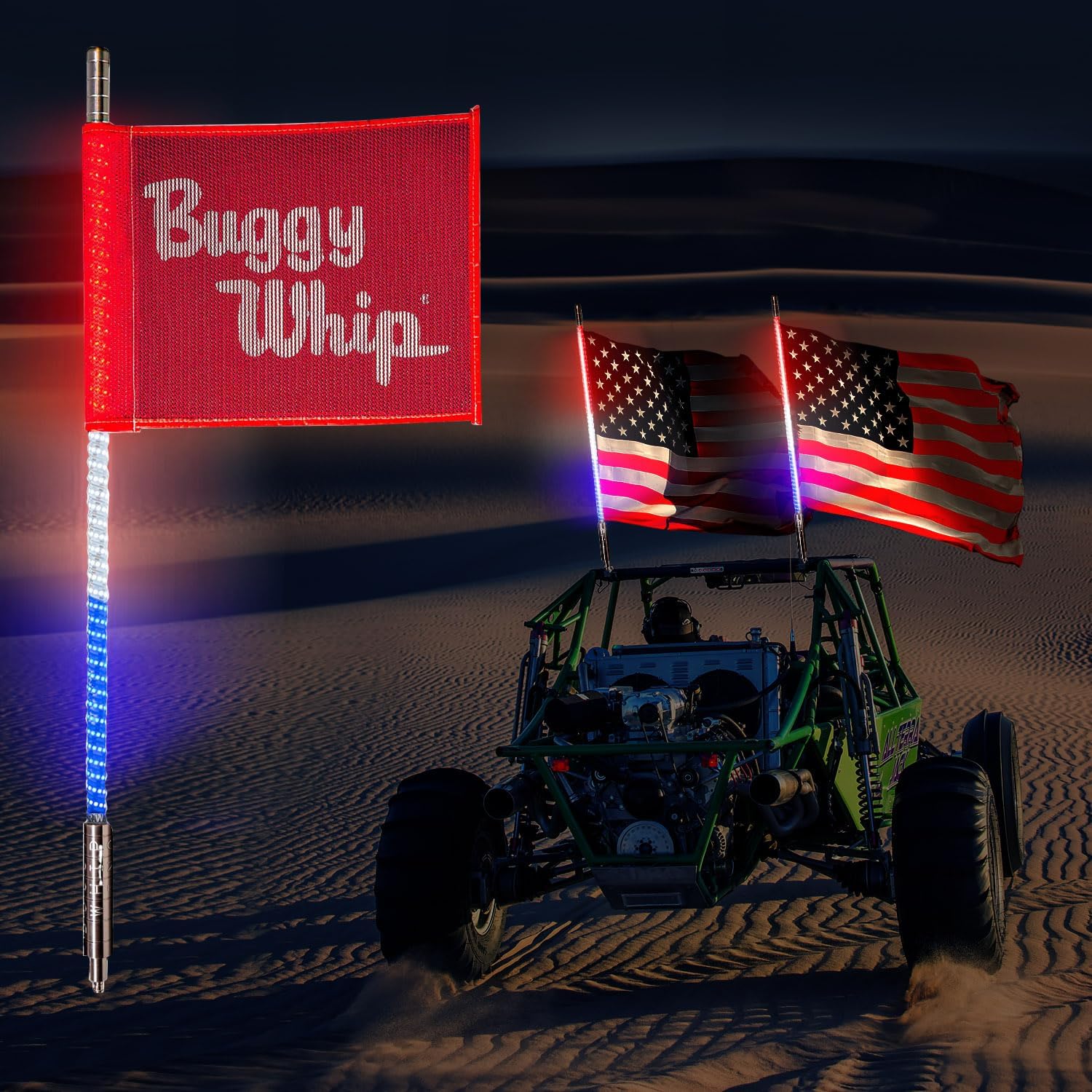Buggy Whip Super Bright Quick Release LED Whips - Industrial Strength, Made in The USA - for UTV, ATV, SXS, Polaris, Can Am, Trucks, Mining, Construction, Safety Vehicles (Red, White & Blue, 4FT)