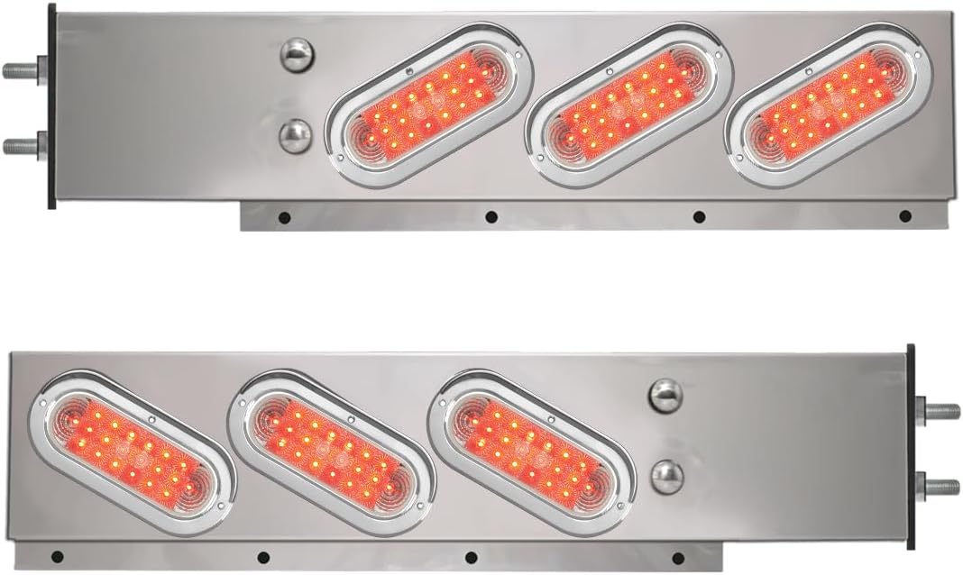 United Pacific 61014 Light Bar, with Visors, Polished, Stainless Steel, Red LED/Lens, Six 4" LED Turbine Lights