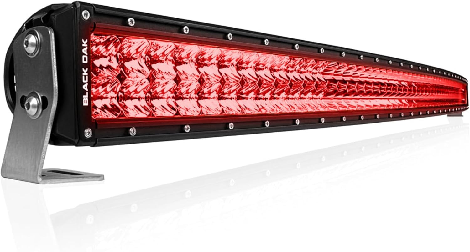 Black Oak LED Curved Red LED Light Bar Predator Hunting Lights, Double Row Combo Optics IP69K Rated, Off Road Fishing, Emergency, Safety Lights for Trucks, SUVs, ATV, UTV, Hardware Included