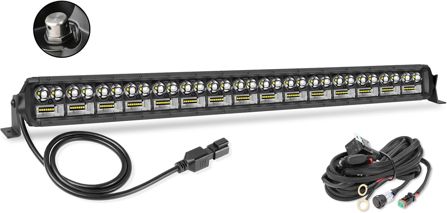 30 Inch LED Light Bar, 405W Dual Row LED Bar with Wiring Harness Off Road Driving Light Spot Flood Combo LED Work Light Waterproof Fog Lamps for Offroad Truck ATV UTV RZR Boat