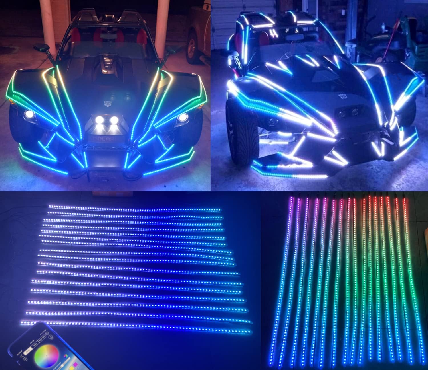 16PCS 1FT (30CM/12) RGB LED Light Strips - Single Row Dream Color Chasing Flow Series APP + Remote Control Fit for Polaris Slingshot Ryker Spyder Golf Cart Hood Grille Lights