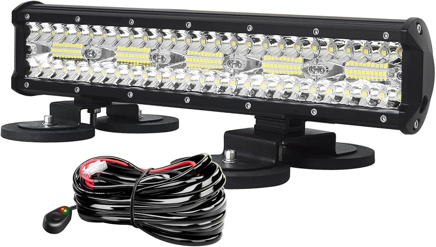AUXTINGS 20 inch 510W Quad Row LED Work Light Bar Spot Flood Beam with Wiring Harness Kit+ 4 inch 18W Spot Work Light for Truck Car ATV SUV 4X4 Jp Truck Boat Tractor,12V 24V Waterproof