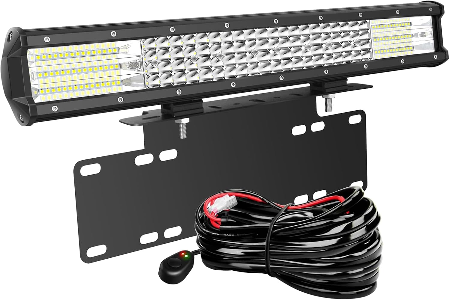 Willpower 20 inch LED Work Light Bar Triple Row Spot Flood Combo Beam with Wiring Harness Kit,23 inch Universal License Plate Mounting Bracket for Truck Car ATV SUV 4X4 Jp Truck Boat,12V 24V IP67