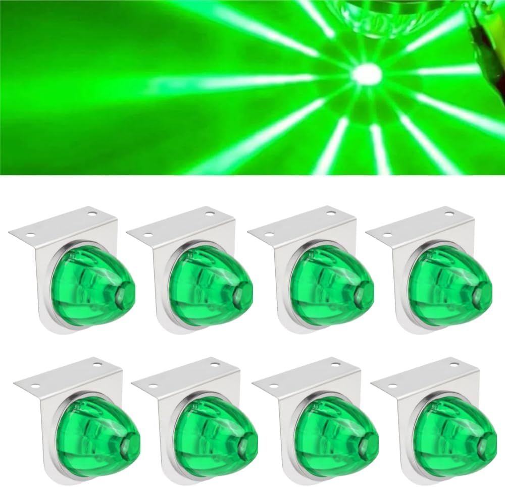 8PCS Mini Watermelon Star Lights with Bracket, LED Turn Signal Strobe Lights for Truck, LED Star Watermelon Marker Lights for Semi Truck (Green)