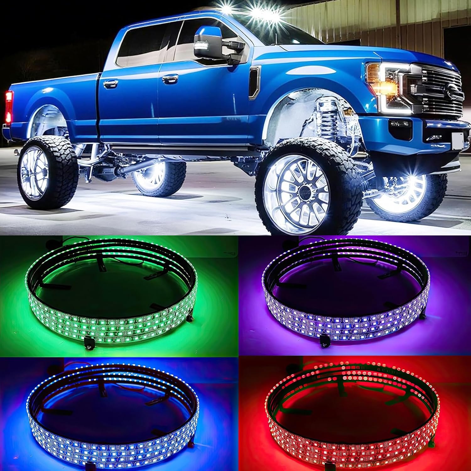 4PCS 15.5" RGB LED Wheel Ring Lighting Kit with APP & Remote Control, Car Rim Lights Compatible with Chevy Silverado GMC Sierra Chevrolet Camaro Dodge Ram Polaris Slingshot Ford F150 Jeep