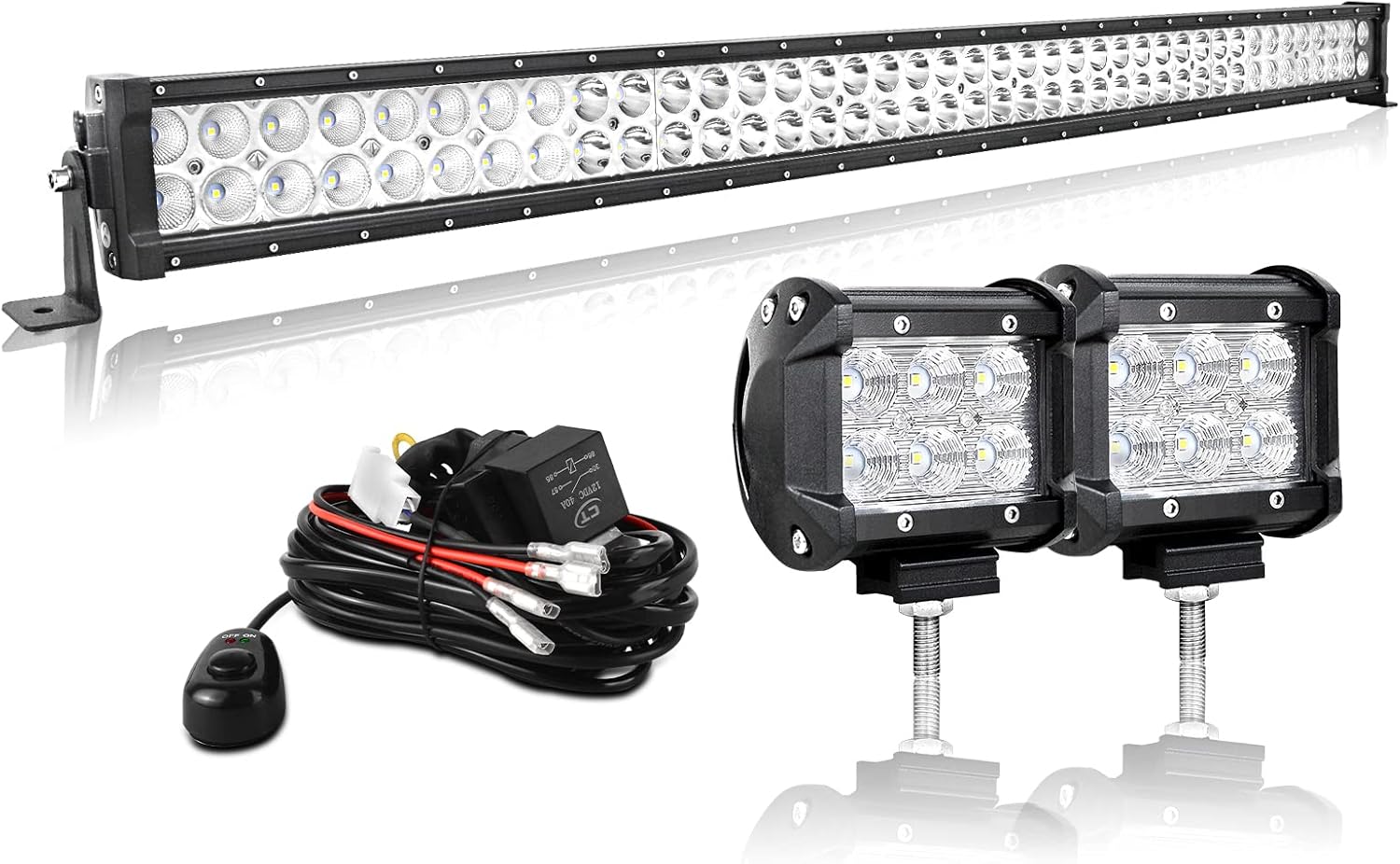 AUXTINGS 42 inch 240W Spot Flood Beam Led Light Bar 2X 4 inch 18W Flood LED Pods Fog Lights with 12V Wiring Harness Kit 2 Leads for Jeep Pickup Off Road Truck 4X4 ATV Boat Trailer,Waterproof