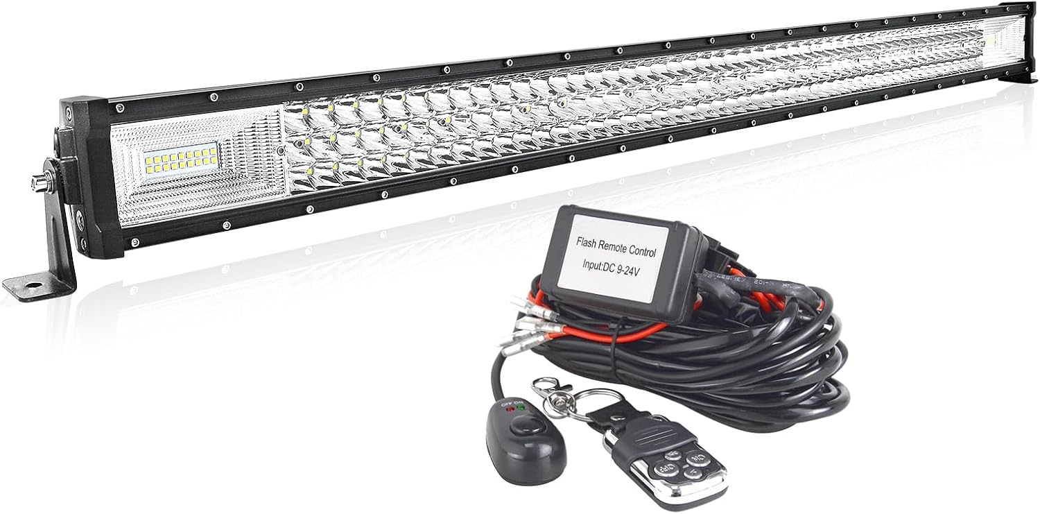 AUXTINGS 32 inch Curved LED Light Bar with Remote Controller Wiring Harness,405W Triple Row Spot Flood Beam,Strobe Flash Work Light Driving Lights,Waterproof Remote Controller On/Off Switch