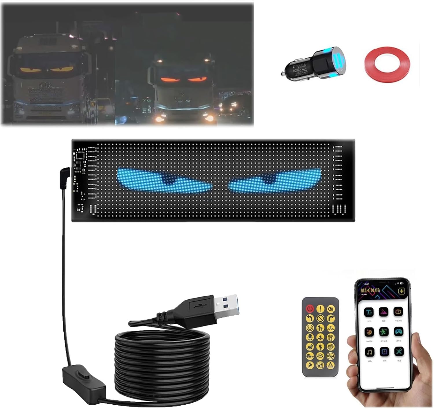 Car Led Display with Smart Remote Control, Devil Eyes, Glow Panels for Car Window, USB-Powered, for Cars & Trucks