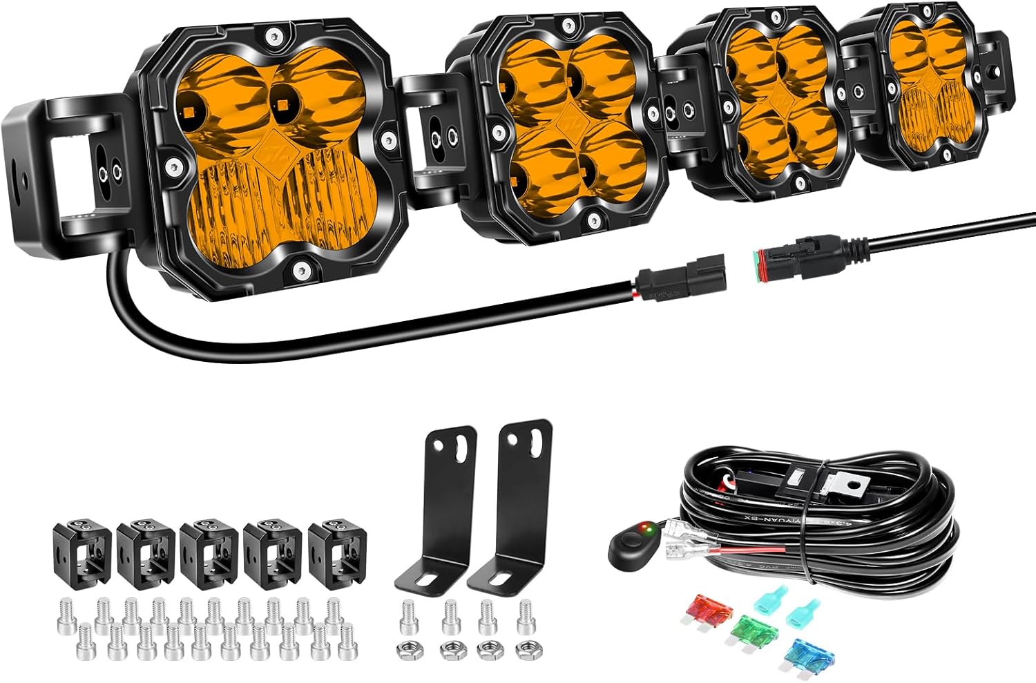 Willpower 27" 120W 12000LM LED Work Light Bar with 12V DT Wire Harness, Square Off Road Driving Lights Fog Lamp for Car Truck Boat Tractor 4x4, 3000K Amber, Waterproof Headlight, Flood Spot Combo