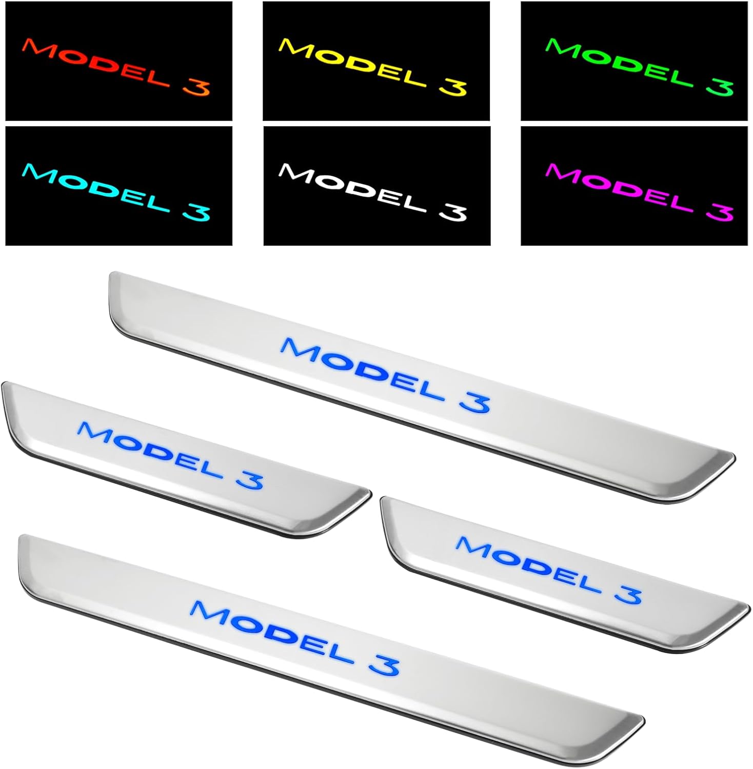 LED Door Sill Lights for Tesla Model 3 2017-2025 Accessories, ABS Scratch-Resistant Sill Protector with 7-Color RGB Lighting, Battery Powered Model 3 Pedal Mood Lamp, Silvery, 4PCS