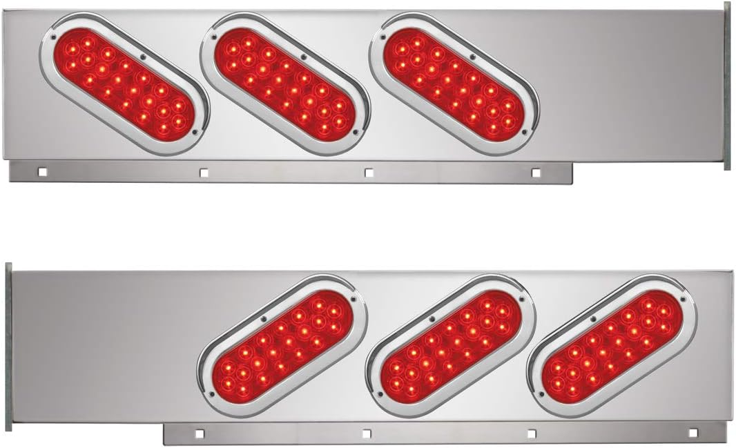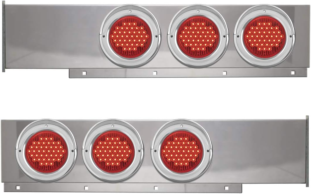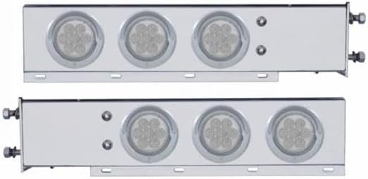 United Pacific 61731 Light Bar, Stainless Steel, Spring Loaded, Rear, Reflector/Stop/Turn/Tail Light, Red LED/Clear Lens, with 2.5" Bolt Pattern, with Chrome Bezels and Visors, 7 LED per Light