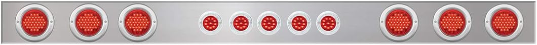 United Pacific 30274 Light Bar, Rear, One-Piece, Incandescent, Stop/Turn/Tail Light, Red Lens, Chrome Steel Housing, with Chrome Plastic Light Bezels