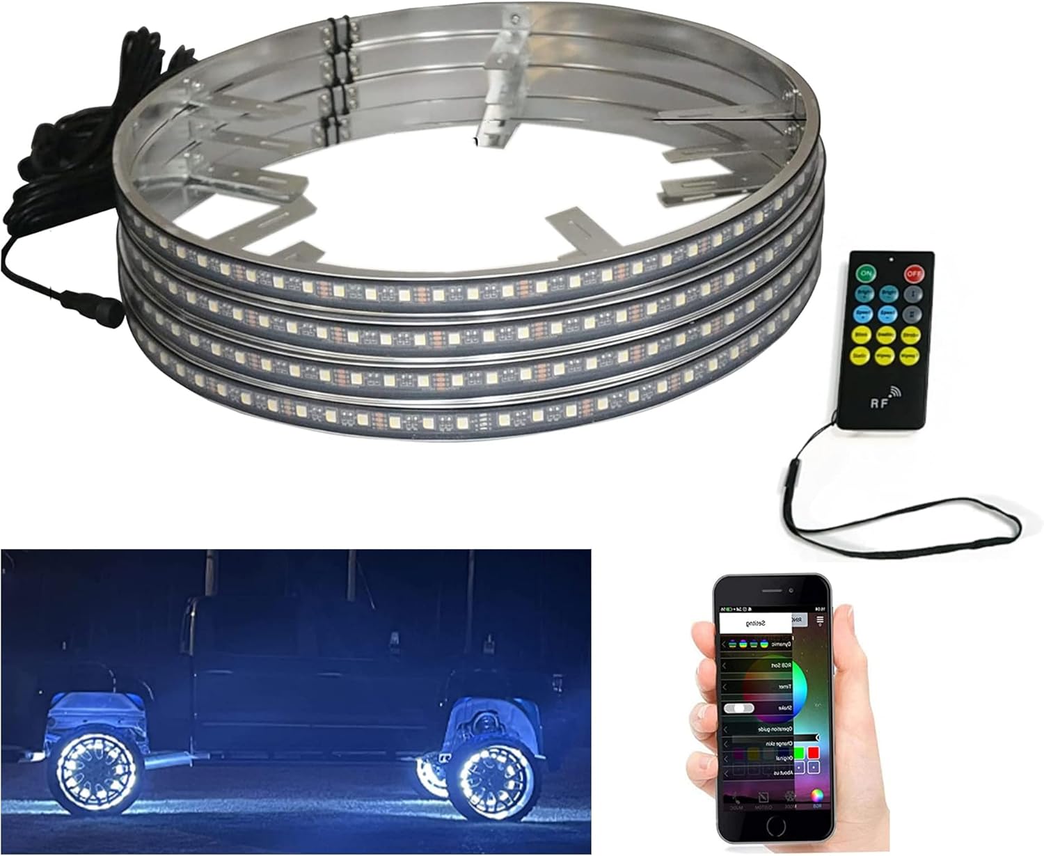 15.5" RGBW Wheel Rim Light Auto Ring Lights,288 LEDs Multi-Color and Super Bright Pure White Tair Wheel Light Kits with IR&APP Control for Car ATV SUV Truck