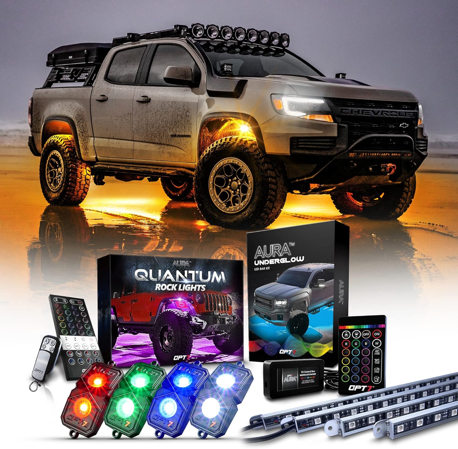 OPT7 RGBW Rock Lights & Underglow Bundle Lights Kit, Exterior Neon Accent Truck LED Lights with Remote Control, RGB Multicolor Modes, Music Sync, Trucks Decoration for Tacoma 4Runner F150