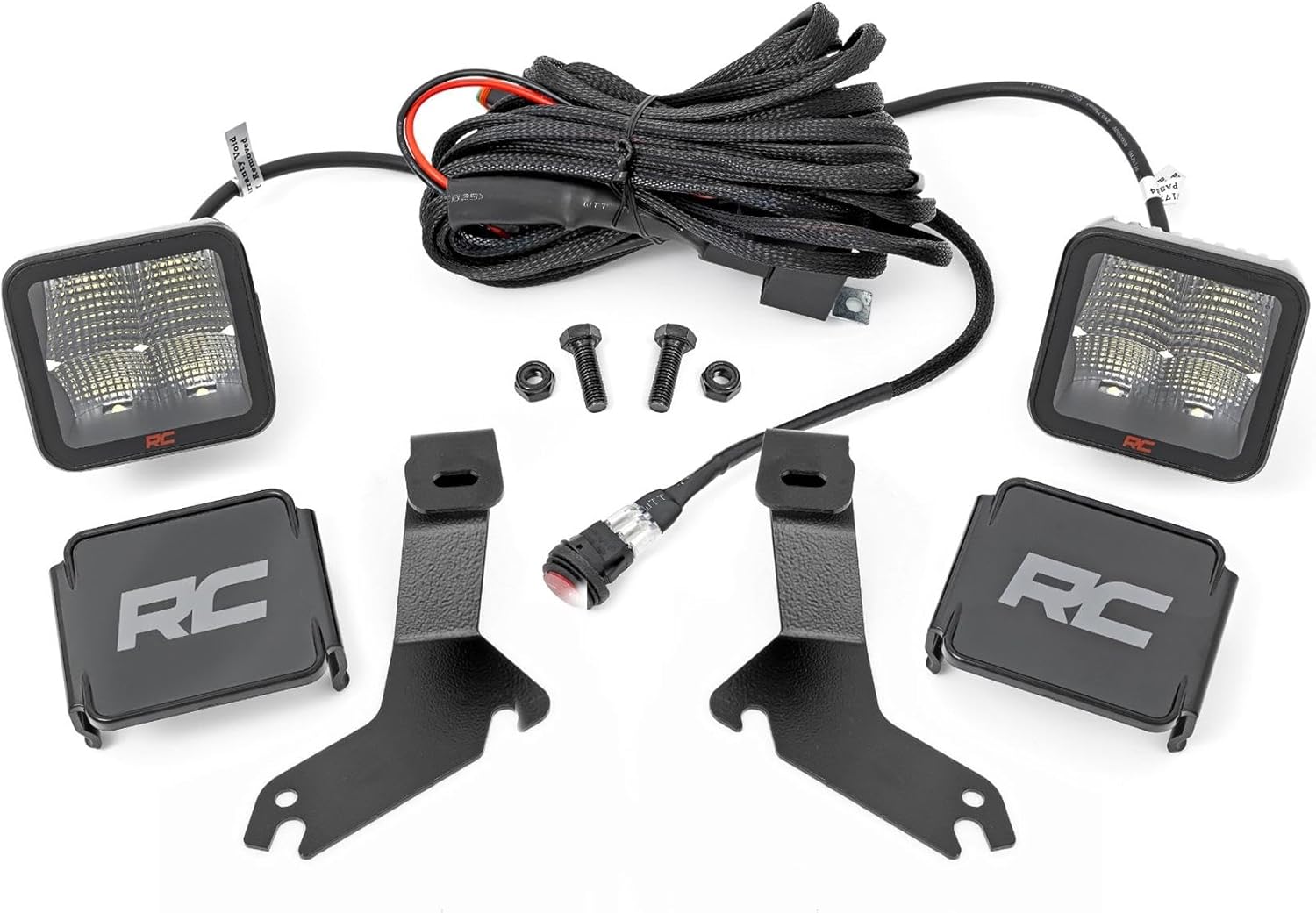 Rough Country LED Ditch Light Kit for Toyota Tacoma (2005-2015) - 80W Dual 2" Spectrum Series Lights, 9600 Lumens, Wide Flood Beam