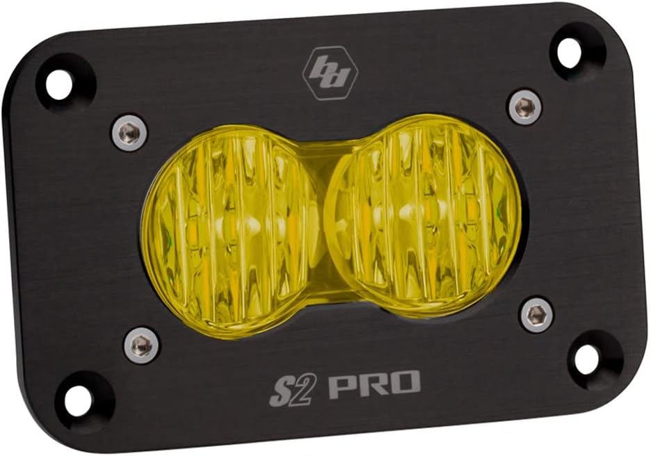 Baja Designs S2 Pro Black Flush Mount LED Light Pod for UTV, Off Road 4x4, Truck, Boat (Wide Cornering Lens; Amber)