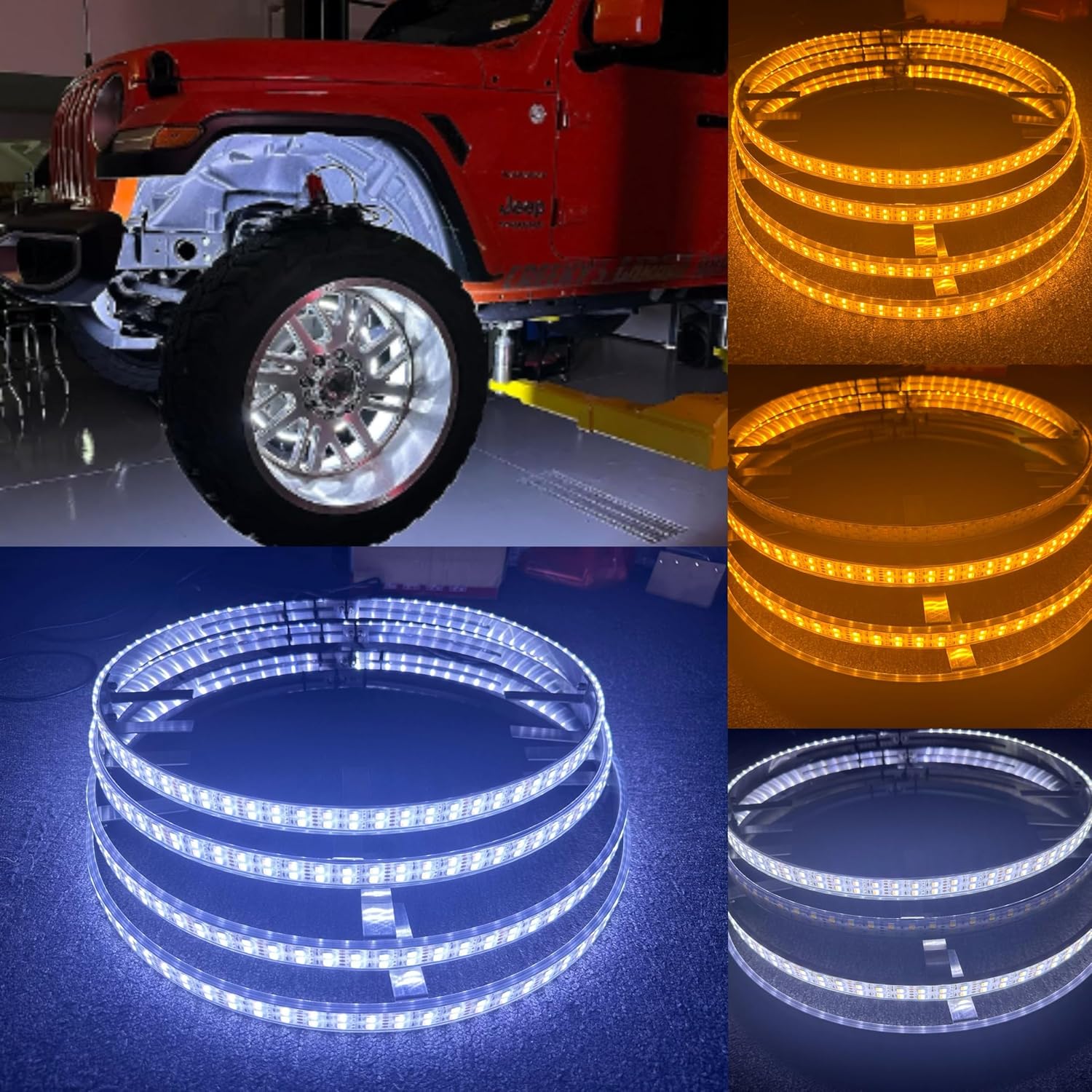 15.5" Double Row White/Amber Dual Color LED Wheel Light 576Leds Flashing Pure White Rim Lights w/Amber Turn Signals IP68 Strobe Bright Tire Lights Rocker Switch/Remote Ctrl