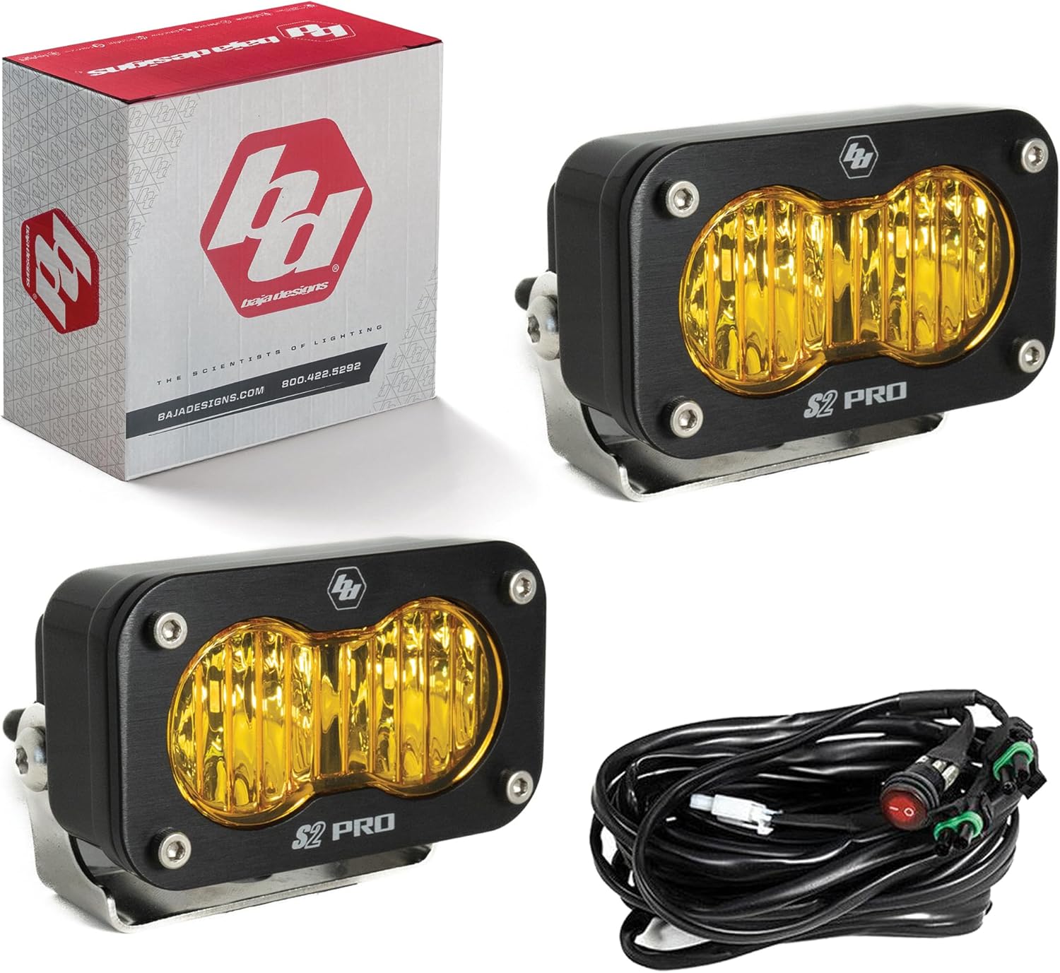 Baja Designs S2 Pro Black LED Auxillary Light Pods Pair - 2 PCS LED with Wiring Harness (Wide Cornering; Amber)