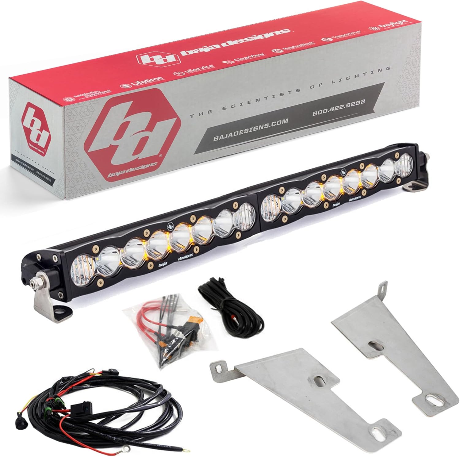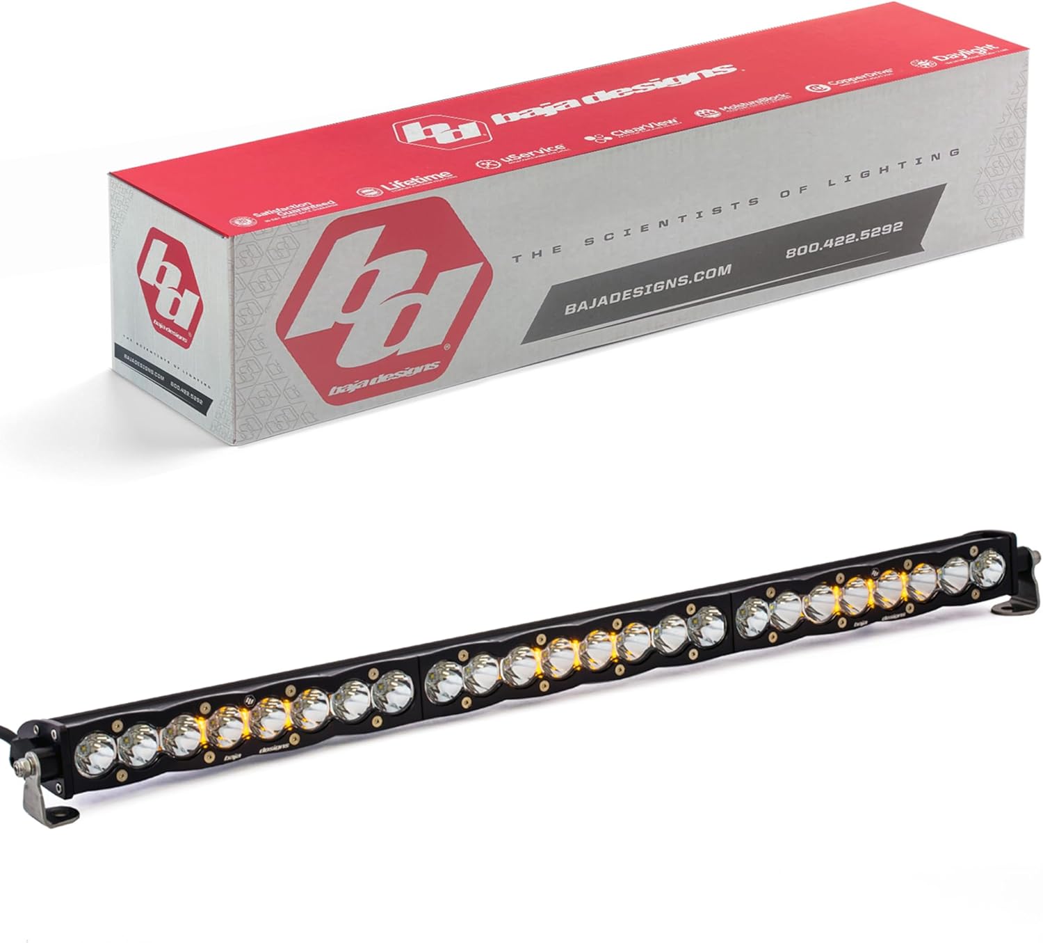 Baja Designs S8 LED 30" Light Bar - Work/Scene Beam - Slim Off-Road LED Light Bar for Trucks, Wranglers, 4x4, UTV, ATV - Amber Backlight (Clear Lens)