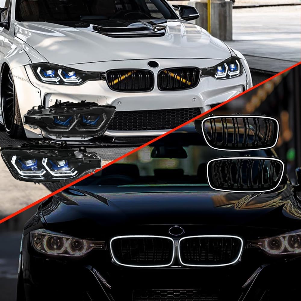 Headlight and Grill Lights for 2013-2018 BMW F30 F31 3-Series 320i 328i 328d 330i 335i 330e 340i LED Replacement Accessories Part (G+H Xenon)
