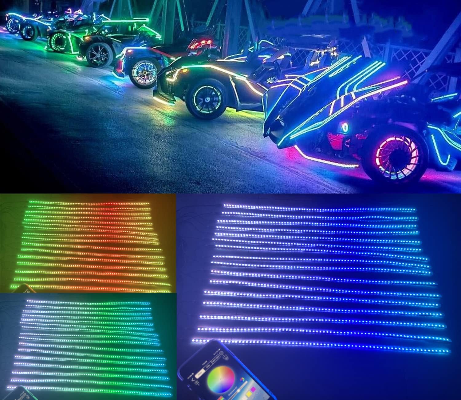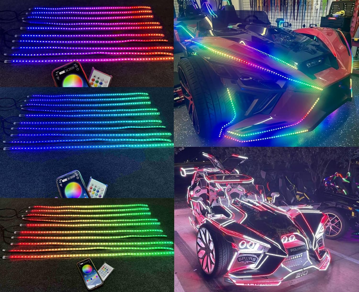 Lighting - 14PCS 5FT 1.4Meters RGB Chasing Flow Underglow Hood Lights Strips Illuminated Lighting KIT for 2015-2024 Polaris Slingshot GT LE S SL SLR SLR LE & Spyder Ryker Canam Light