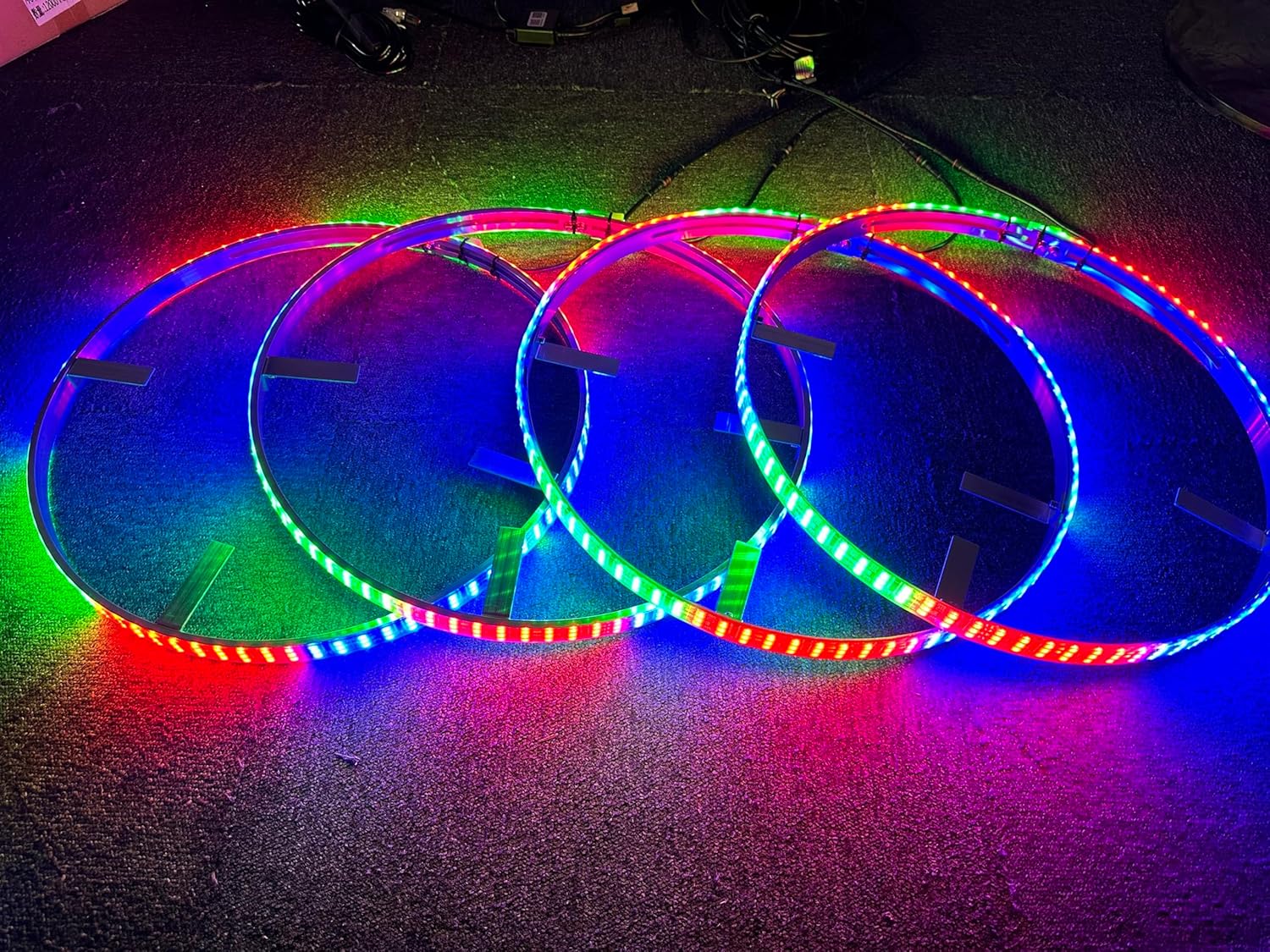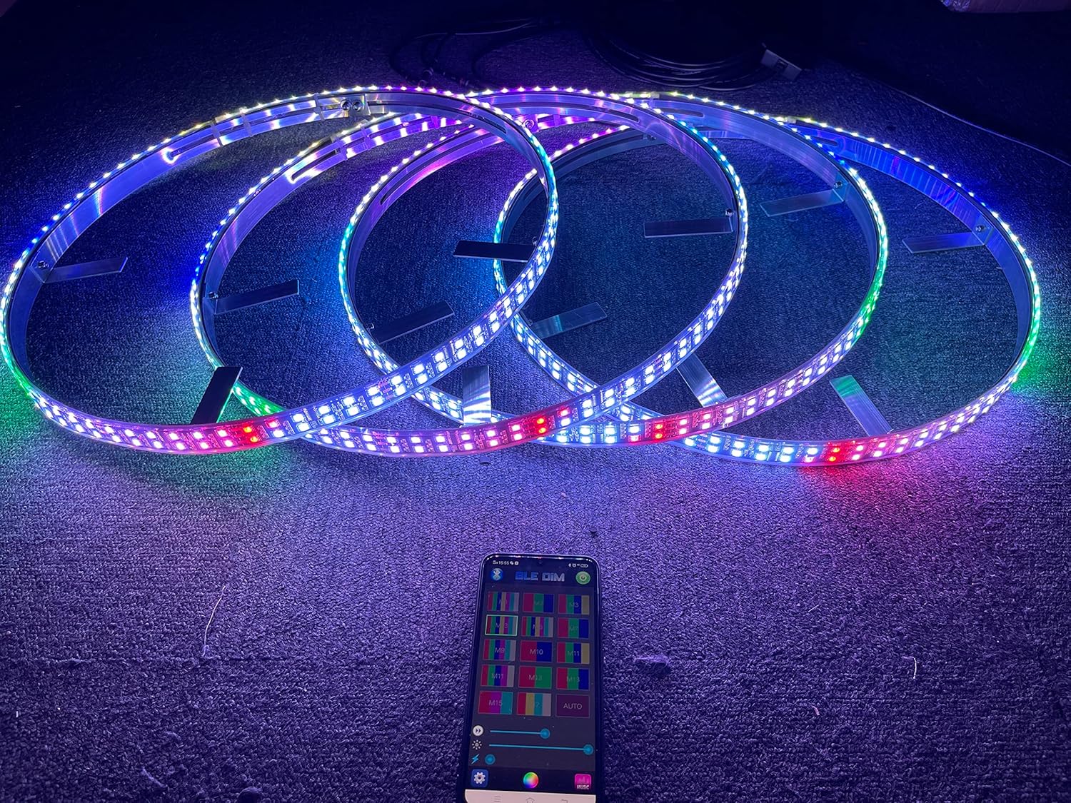 17.5'' Dream Color Chase RGB Double Row LED Wheel Light Dancing Flow Multi-Colors IP68 w/Turn Signal,Lock,Braking Functionand Can Controlled by Remote&APP Simultaneously