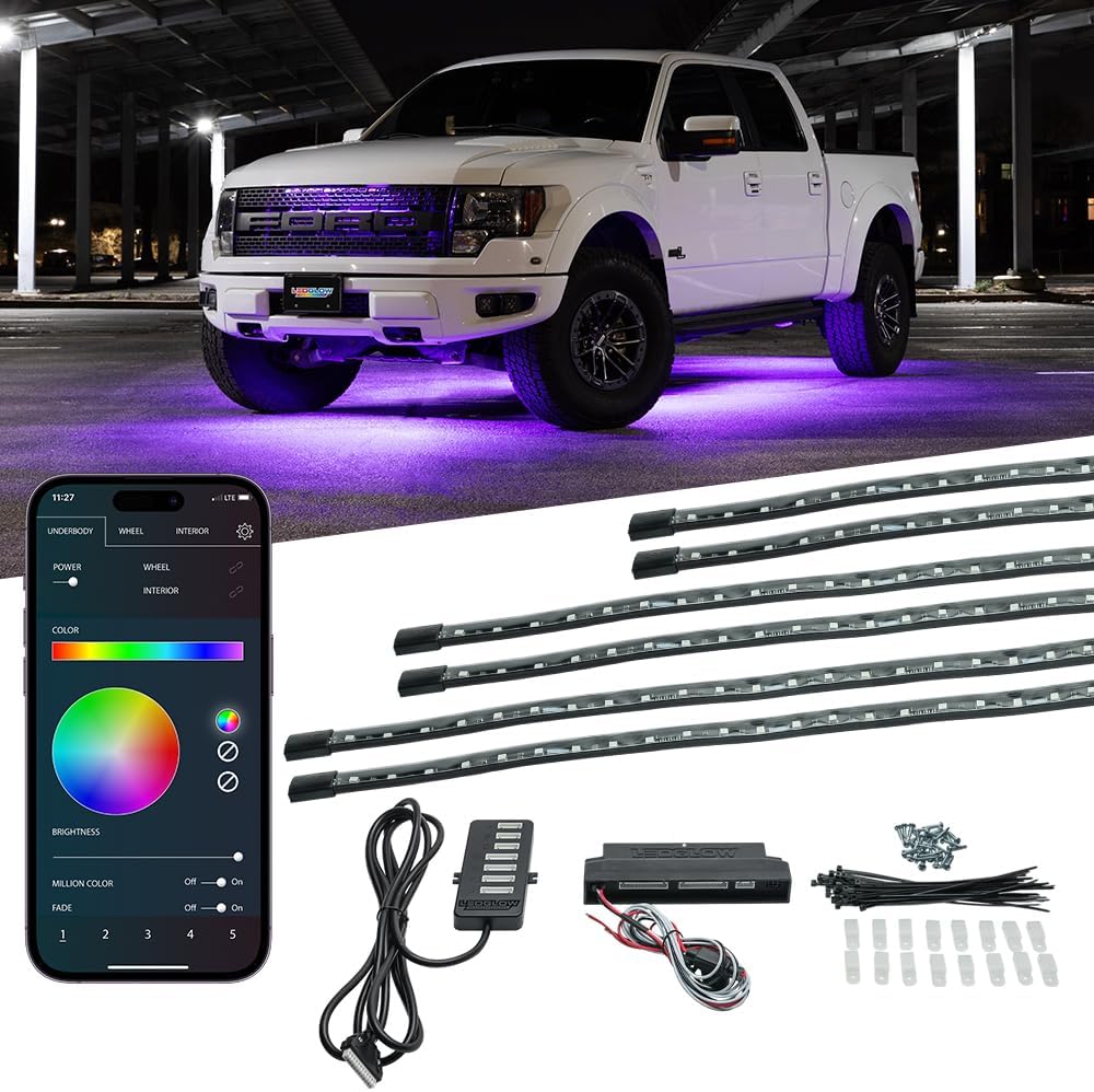 LEDGlow 6pc Bluetooth Million Color Flexible Truck Underbody Underglow Accent Neon LED Lighting Kit - Smartphone App - Courtesy Lights - Create Any Color - 16 Patterns - Flex Tubes Contour Vehicle