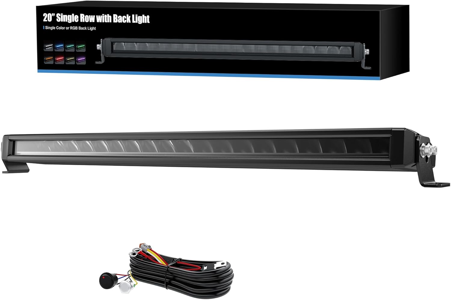 4WDKING 20 Inch Slim LED Light Bar with RGB Accent Lighting, Screwless Design, IP68&IP69K Waterproof, 100W Off Road Driving Lamp with 10FT Wire Harness for Truck/Pickup/ATV/UTV/SUV/Golf Cart/Boat