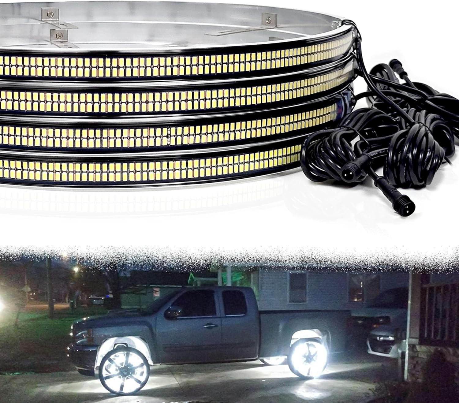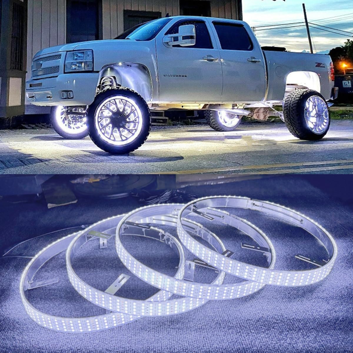 Quad Row 15.5" Bluetooth Wheel Lights for Trucks - Cold White Rim Rings, Strobe/Flash/Breath/Music Modes, Easy Lighting Customization