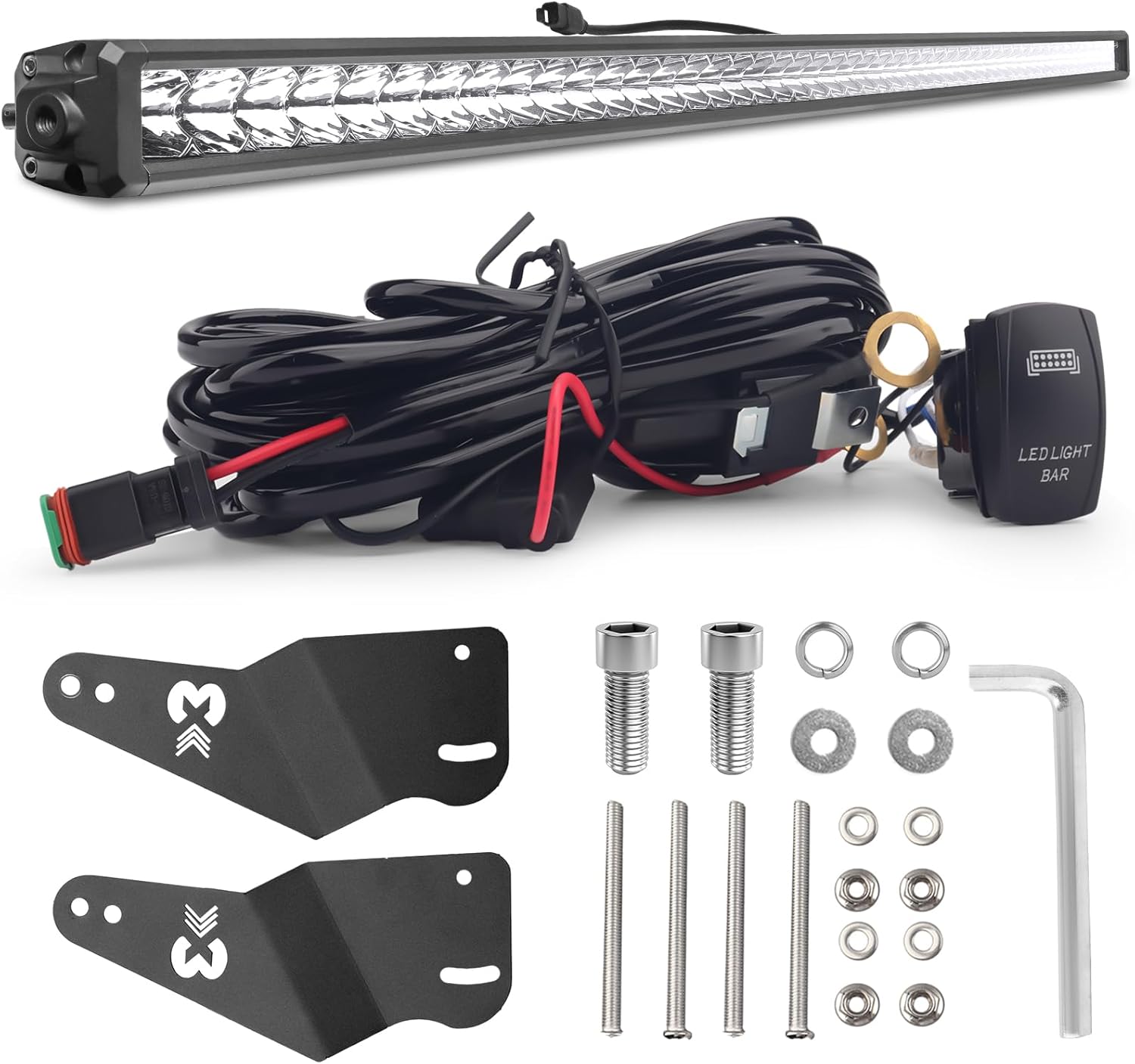 Chelhead Maverick X3 Light Bar Windshield Mount 240W 50'' Single Row Combo Beam with Winshield Holder Rocker Switch Wiring Harness Compatible with Can Am Maverick X3 and X3 Max 2017+ (White)