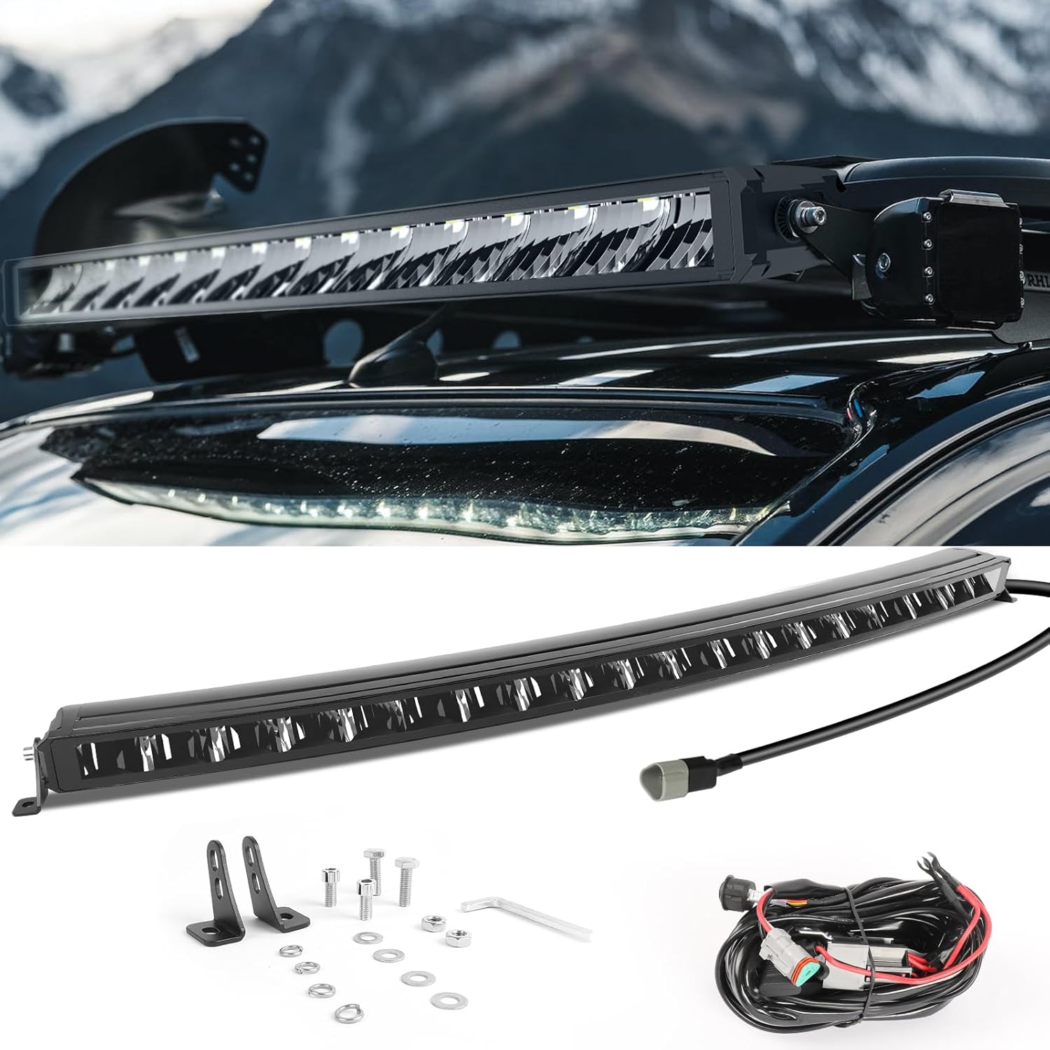 CO LIGHT 40 inch Curved Single Row LED Light Bar - 190W 50000 Lumens 6000K White Yellow Ambient Light Wiring Harness - Ideal for 12V Truck Off-Road Vehicles ATV and Marine