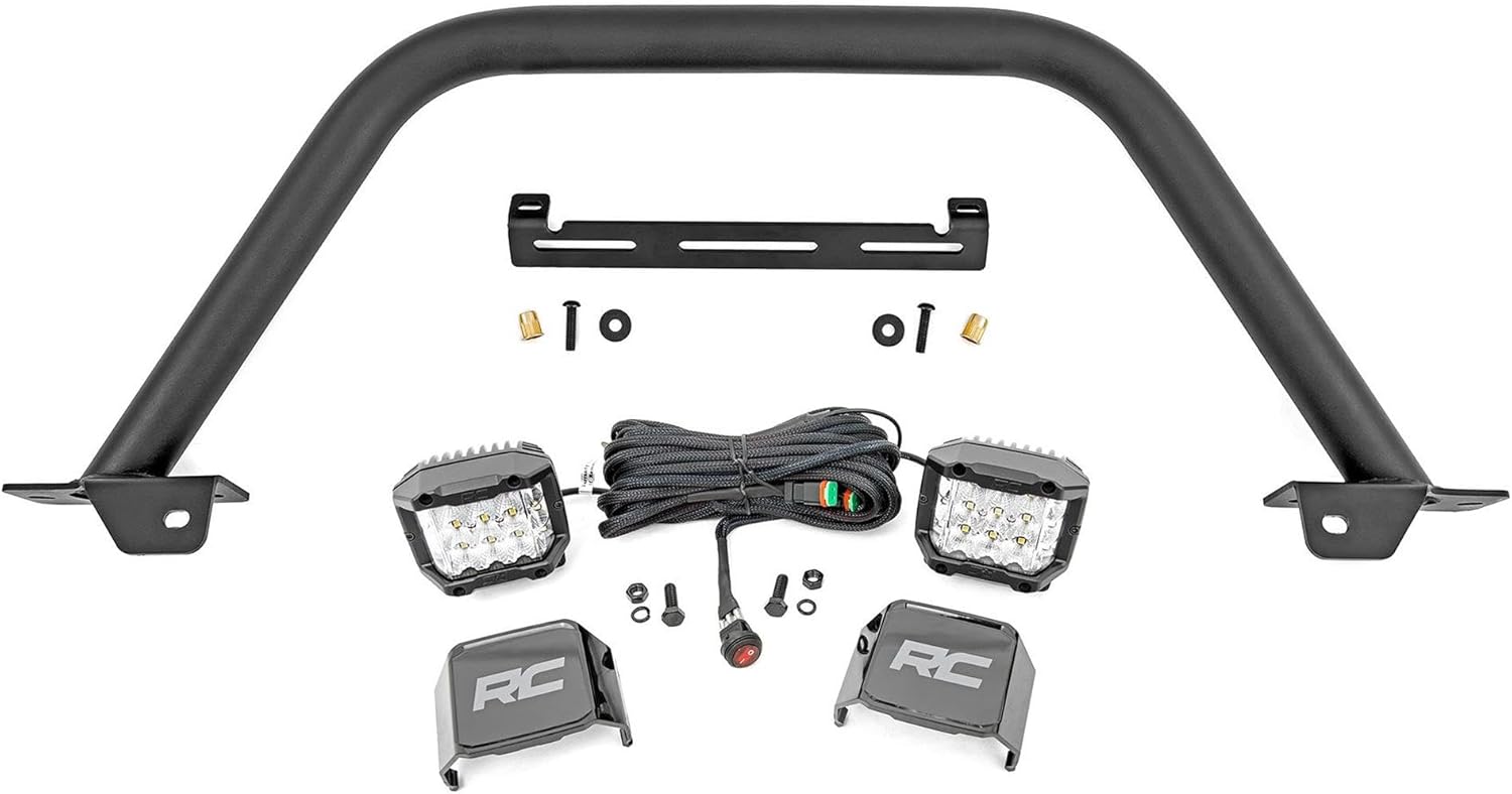 Rough Country Safari Bull Bar with Dual 3" Wide Angle LED Light for Ford Bronco (2021-2025) - 2" Tubular Bar with (2) 3-inch Wide-Beam LED Lights