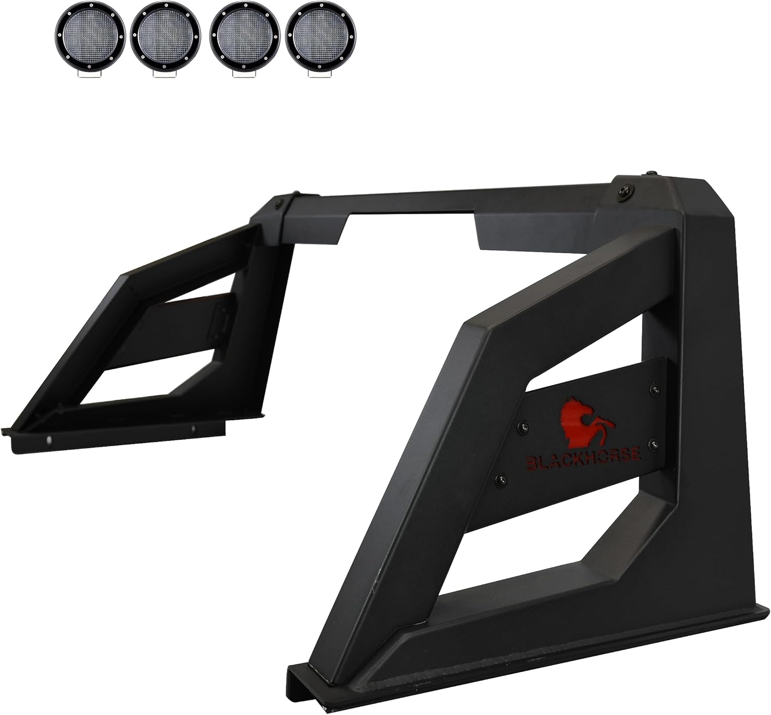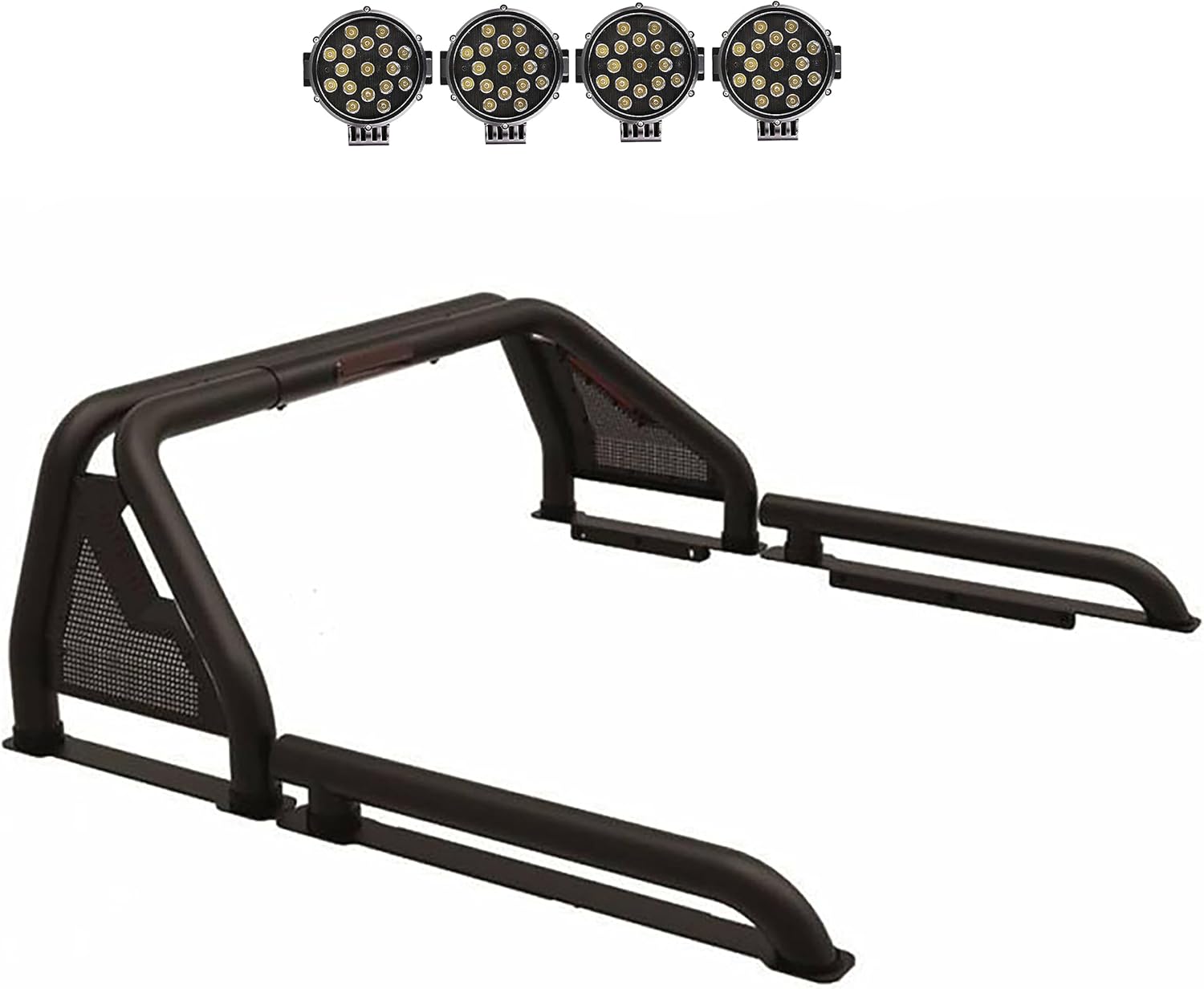 Black Horse Armour Roll Bar Incl. Set of 5.3" Dia.Led Lights,Black Compatible with 01-06 Chevrolet Silverado 3500|07-22 Chevrolet Silverado 3500 HD/GMC Sierra 3500 HD|07-24 Toyota Tundra