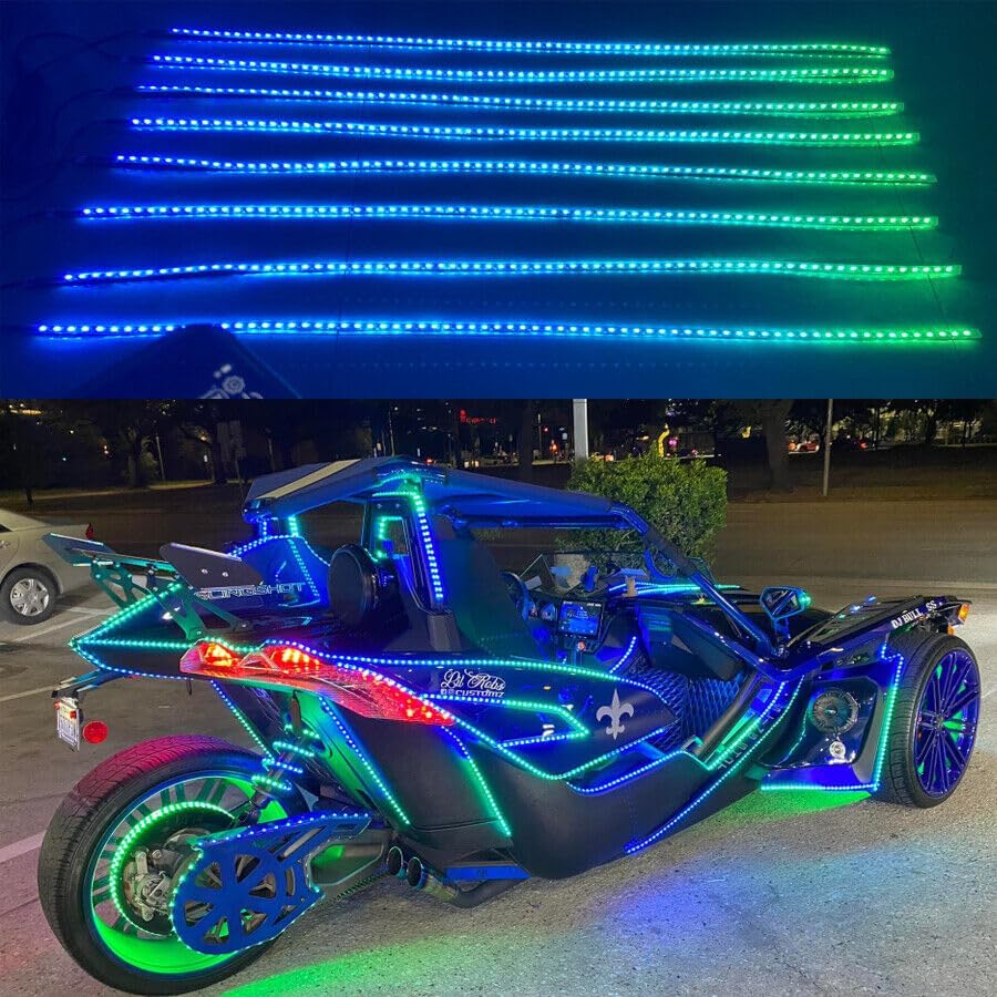 8PCS 6.5FT (2M/78) Dream Color Chasing Flow LED Strip Lights Kit - Strobe/Flash/Breath Modes, Bluetooth + Remote Control, for Polaris Slingshot Front Grill, Lights for Slingshot