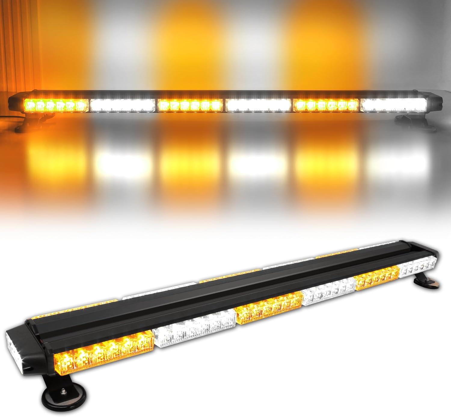 38" 78 LED Emergency Rooftop Strobe Light Bar Safety Traffic Advisor Warning Hazard Light Double Side Flashing with Magnetic Base for Work Truck Vehicles Construction Tow Pickup (Amber/White)