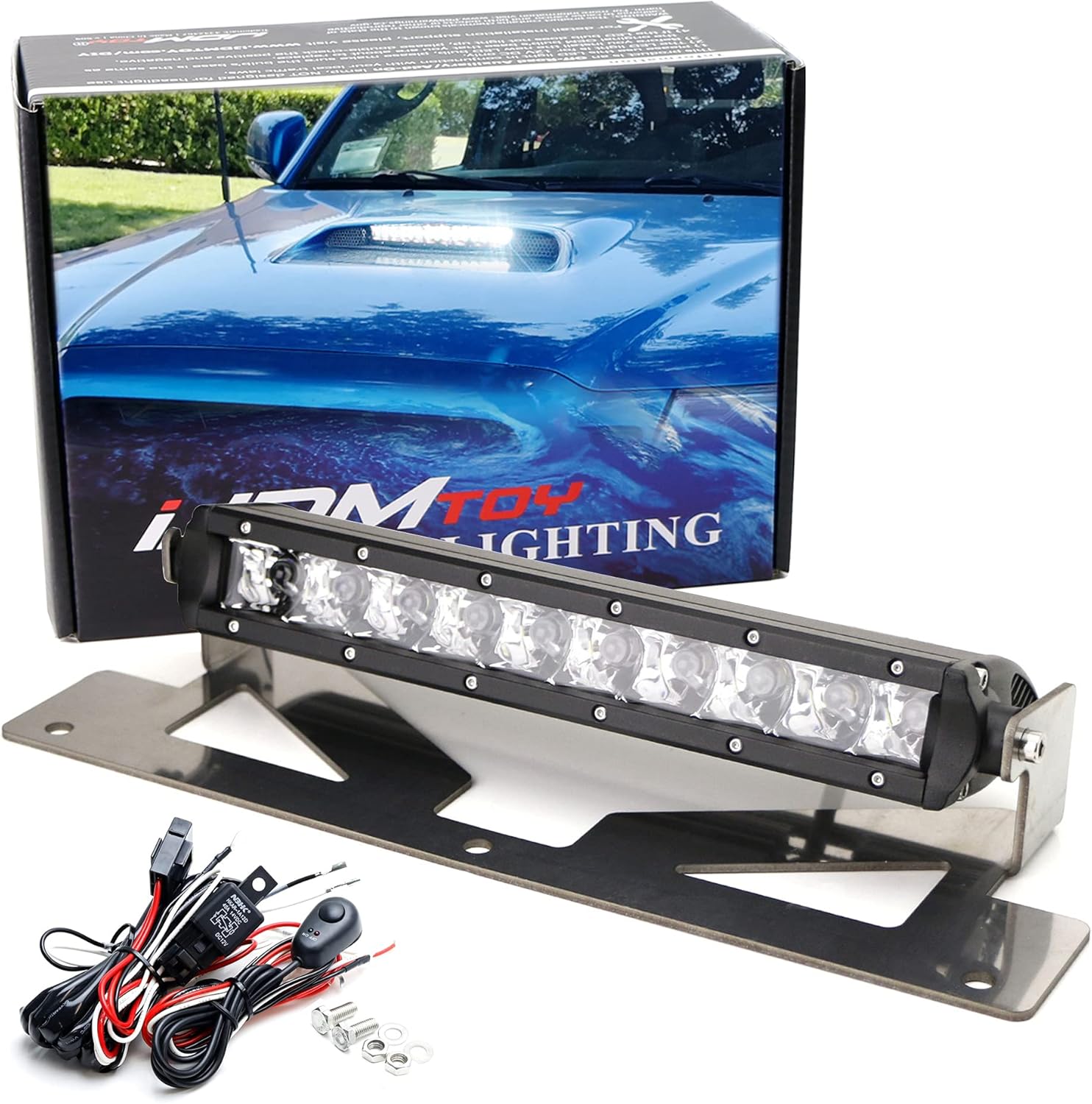 iJDMTOY Hood Scoop Mount LED Light Bar Kit Compatible with 2005-2011 Toyota Tacoma, Incl (1) 50W High Power LED Lightbar, Hood Bulge Stainless Steel Mounting Brackets & Wiring Switch