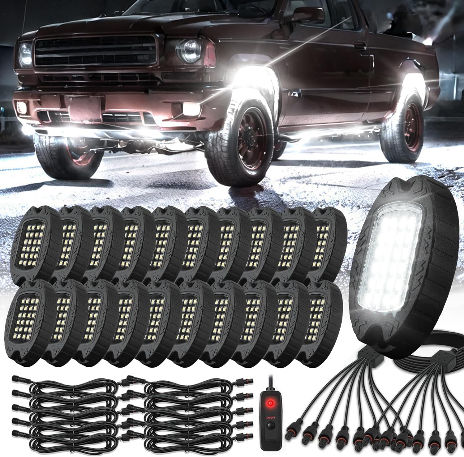 LEDMIRCY LED R1 Pure White Rock Lights 20PCS for Trucks RZR Off Road Boat Car Auto ATV UTV SUV Underglow Trail TRAI Rig Lights Underbody Neon Light High Power Waterproof Shockproof